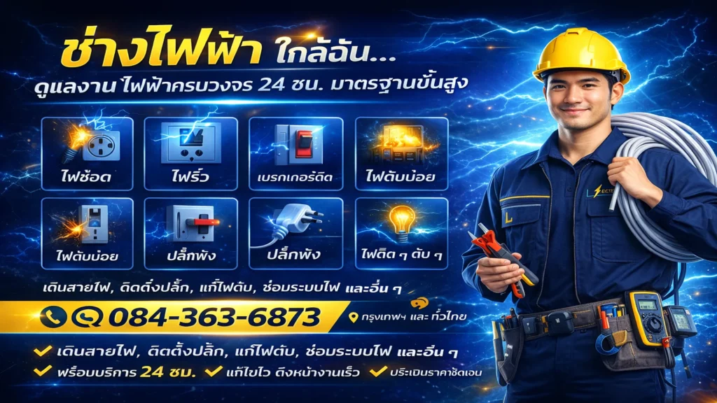 ช่างไฟฟ้าใกล้ฉันภาคกลาง ดูแลงานไฟฟ้าครบวงจร 24 ชม. มาตรฐานขั้นสูง